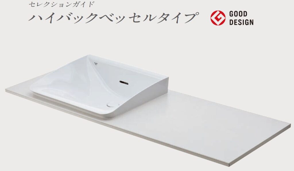ハイバックベッセルタイプは、ボウル一体タイプの上質さを維持しながら、価格を抑えたい方におすすめのモデルです。LIXIL独自のセラミック技術を活かしたハイバックベッセルボウルとセラミックカウンターを採用し、エレガントで重厚感のあるデザインが特徴です。